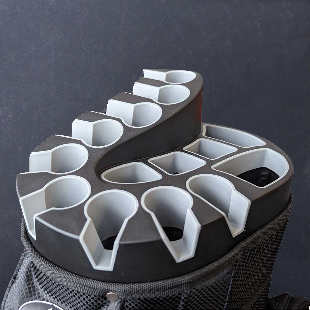 • V-förmiges Einhängesystem für die Eisen – verhindert Schlägerklappern und schützt die Schäfte